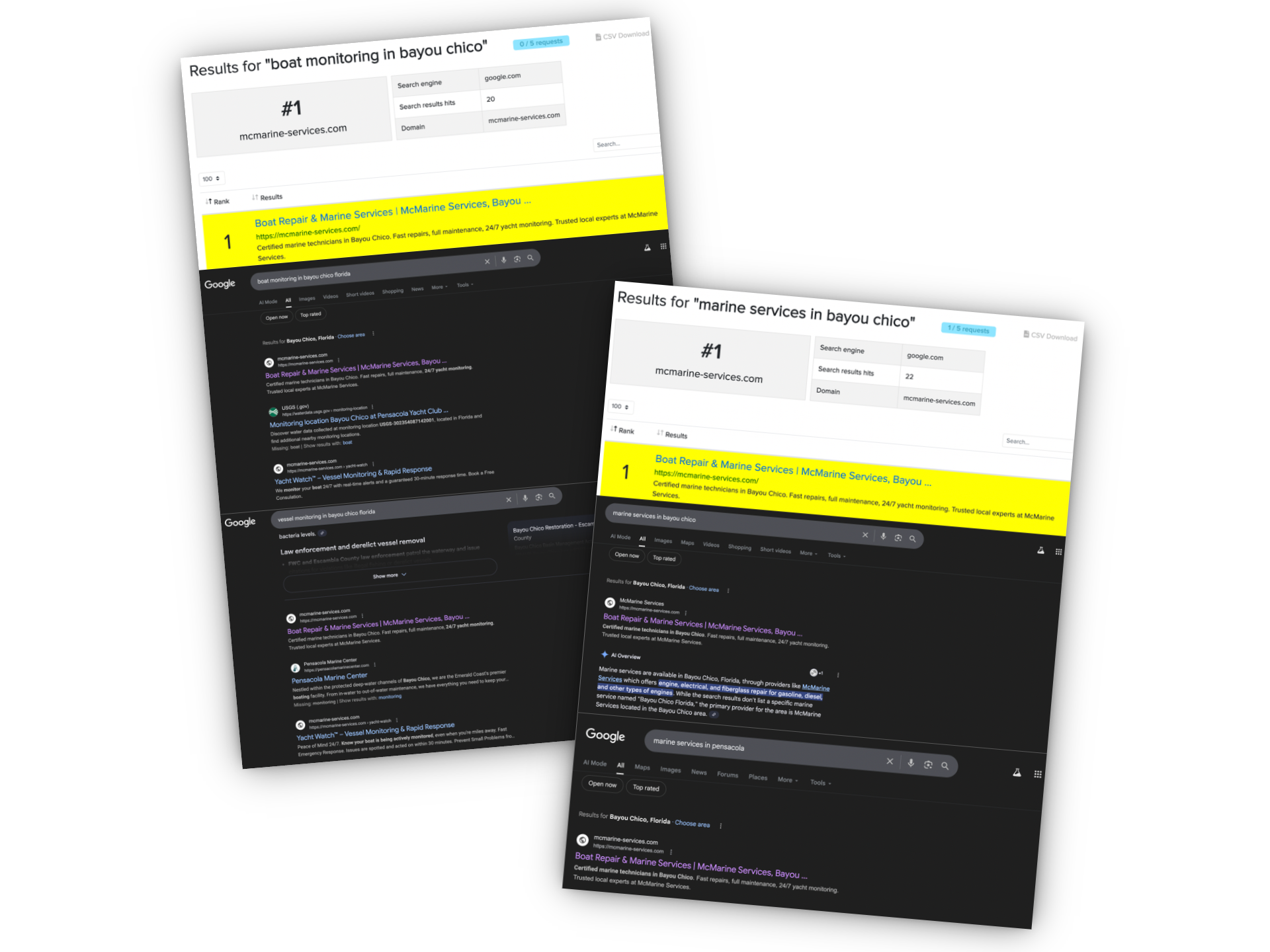 Discovery & Understanding: I developed a clear understanding of how MCMarine operates, the services most valuable to boat owners, and the digital structure required to support their goals in the Pensacola/NW Florida region.
